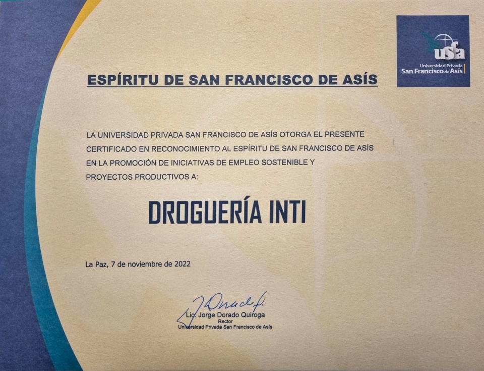 En reconocimiento al compromiso con la reactivación económica INTI recibió el Premio Empresarial La Paz Productiva en la categoría de grandes empresas, logrando en segundo lugar como empresa “Eco-amigable”.