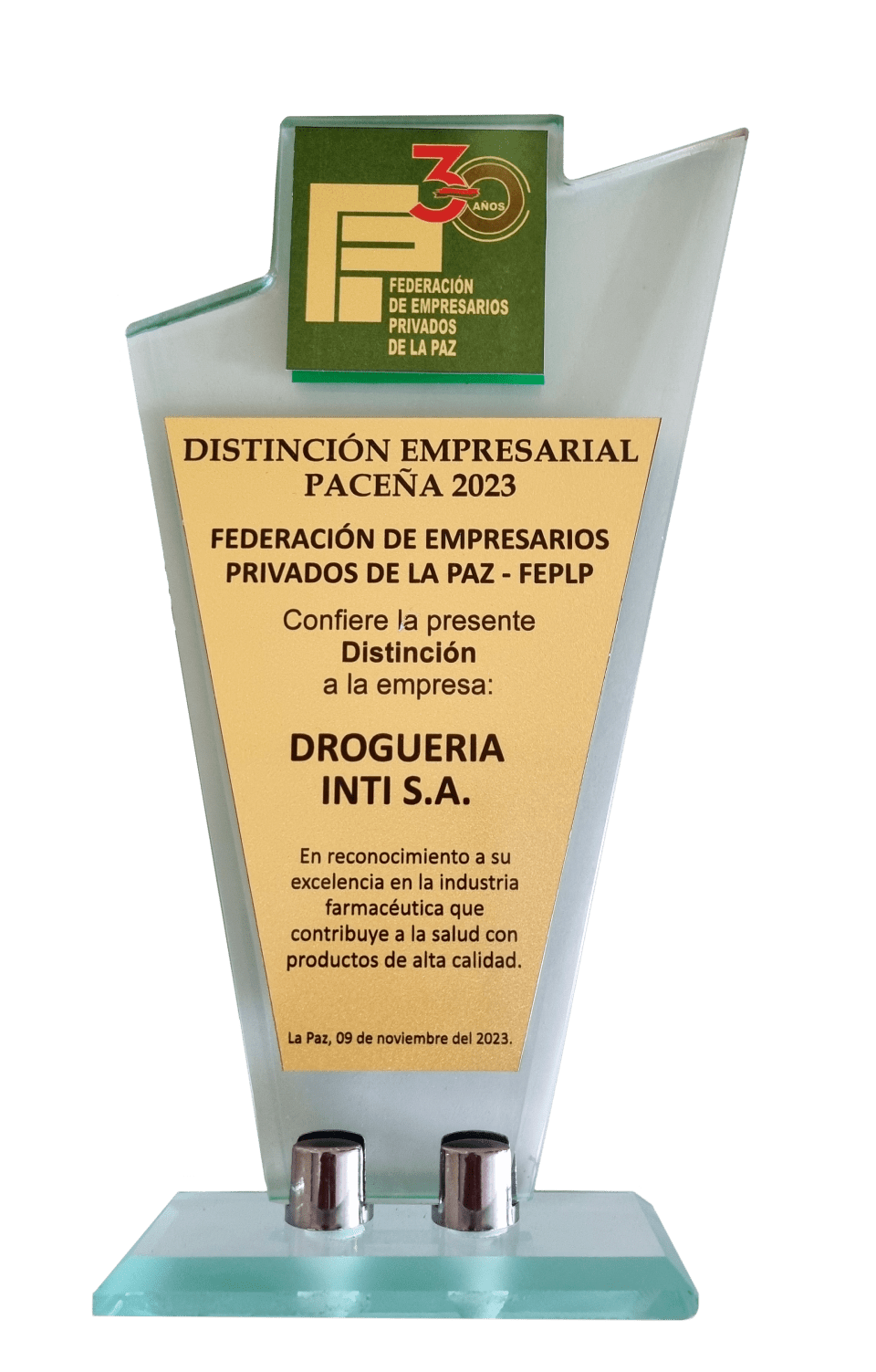 En el 30 aniversario de la FEPLP, INTI recibió la “Distinción Empresarial Paceña 2023” a la excelencia en la industria farmacéutica que contribuye a la Salud.